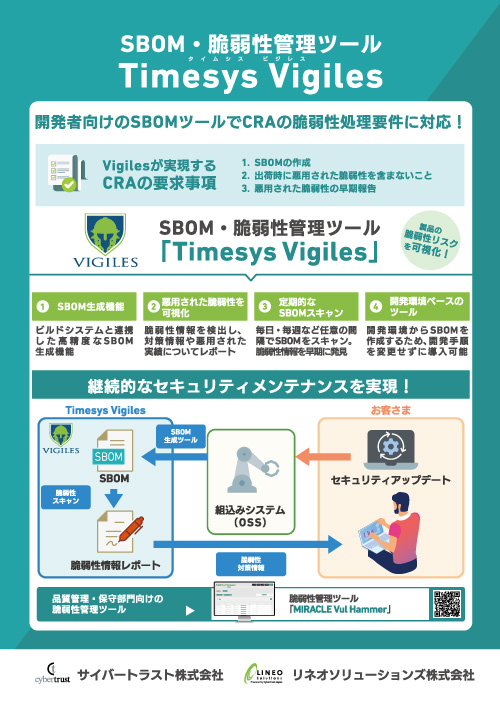Timesys Vigiles は組込み製品のSBOM生成・脆弱性管理を行なうソリューションです。